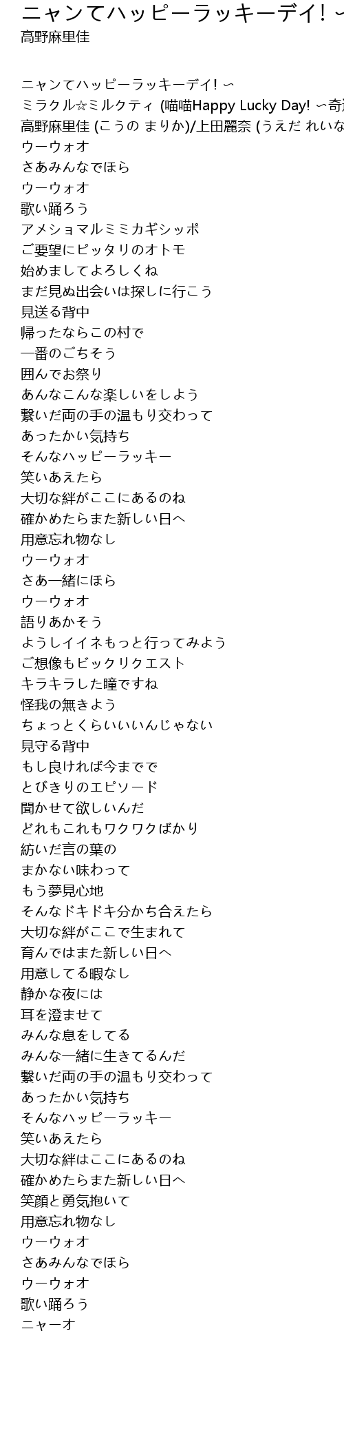 | Song | ニャンてハッピーラッキーデイ! 〜 ミラクル☆ミルクティ |