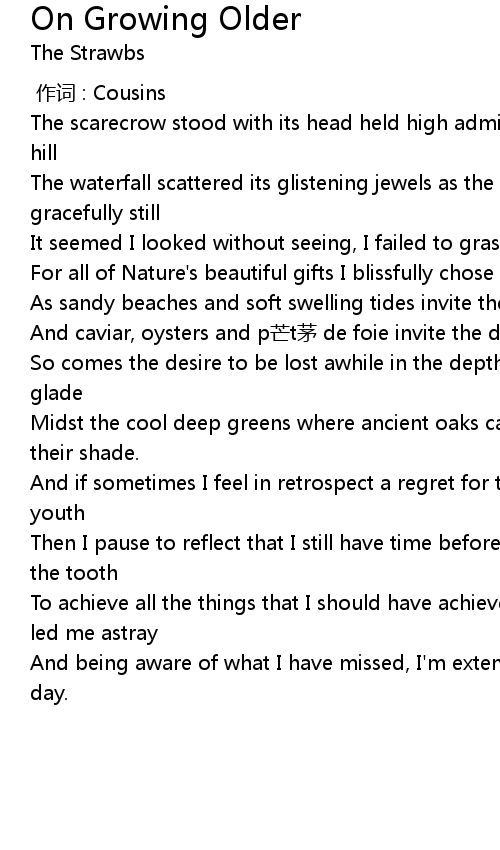 | Song | On Growing Older |