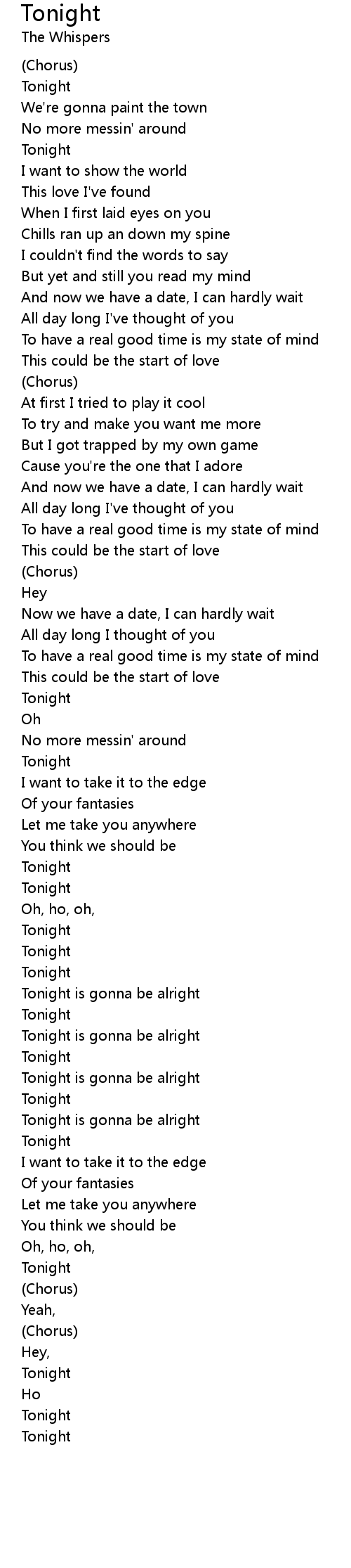 Tonight is gonna be alright |
