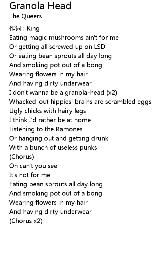 | I don't wanna be a granola-head (x2) | |