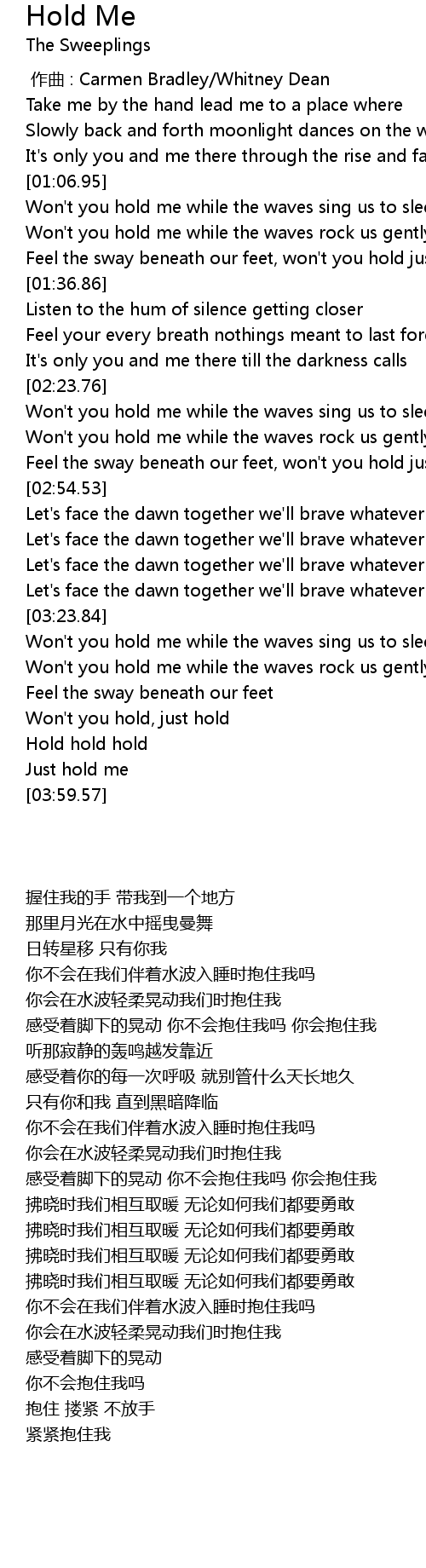| [03:24.34] | Won't you hold me while the waves sing us to sleep |
