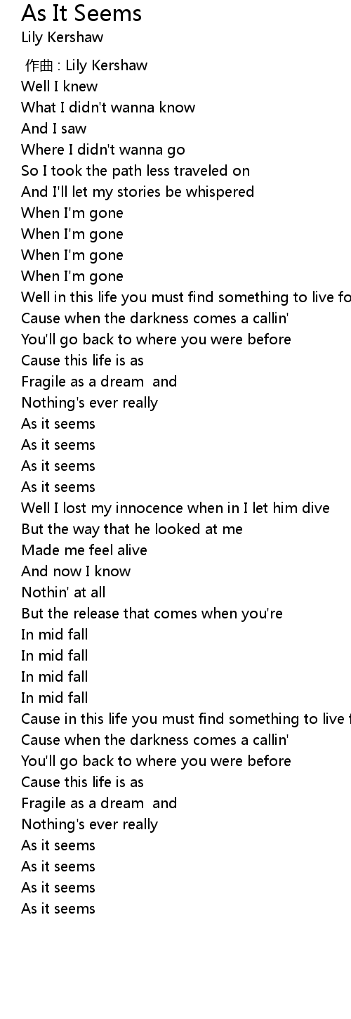 | [00:00.000] | zuo qu : Lily Kershaw |