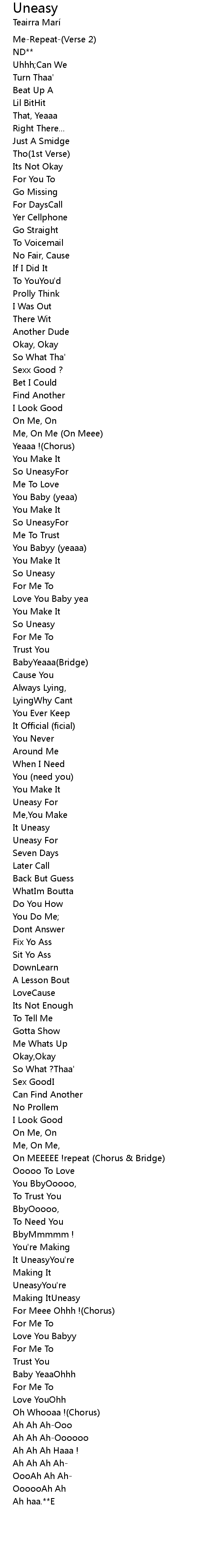 | [01:05.45] | It Uneasy |