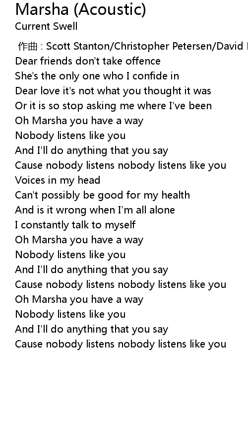 | [00:34.29] | Oh Marsha you have a way |
