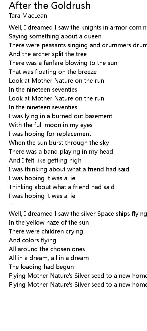 Well, I dreamed I saw the knights in armor coming |