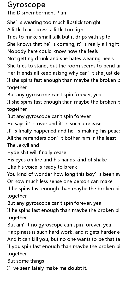 | But ain' t no gyroscope can spin forever, yea | |