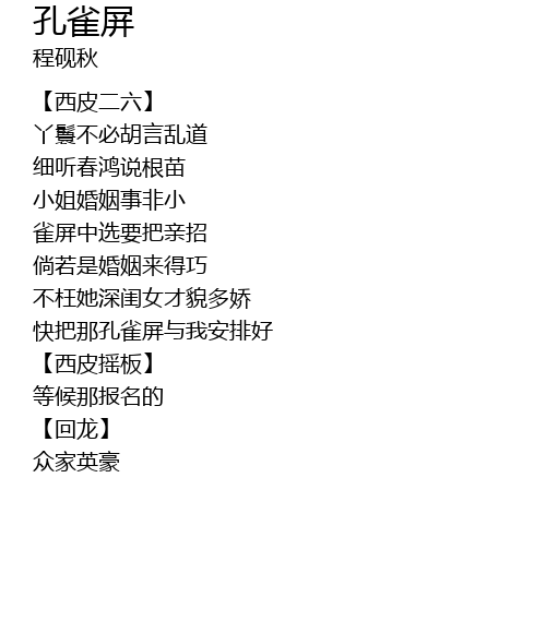 | [01:41.56] | 快把那孔雀屏与我安排好 |
