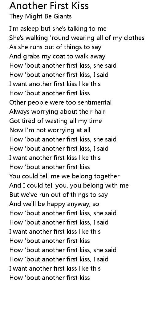 How 'bout another first kiss, she said |