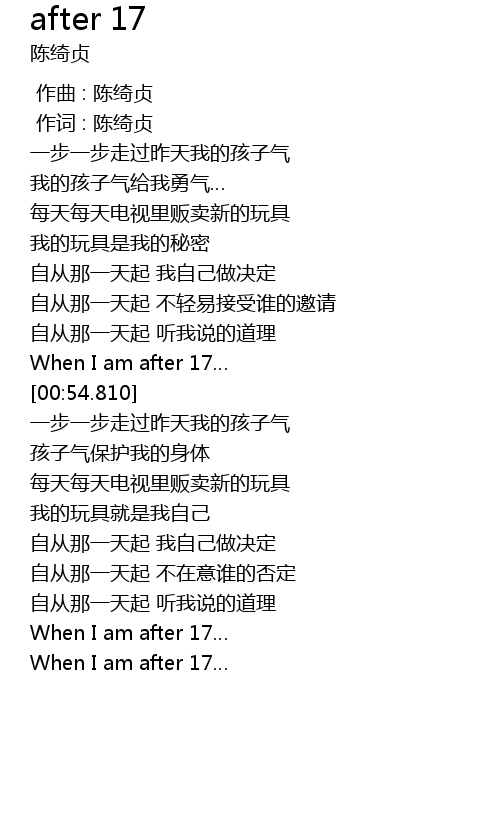 | [00:47.520] | When I am after 17 |