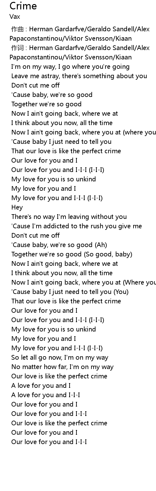 | [00:32.401] | That our love is like the perfect crime |