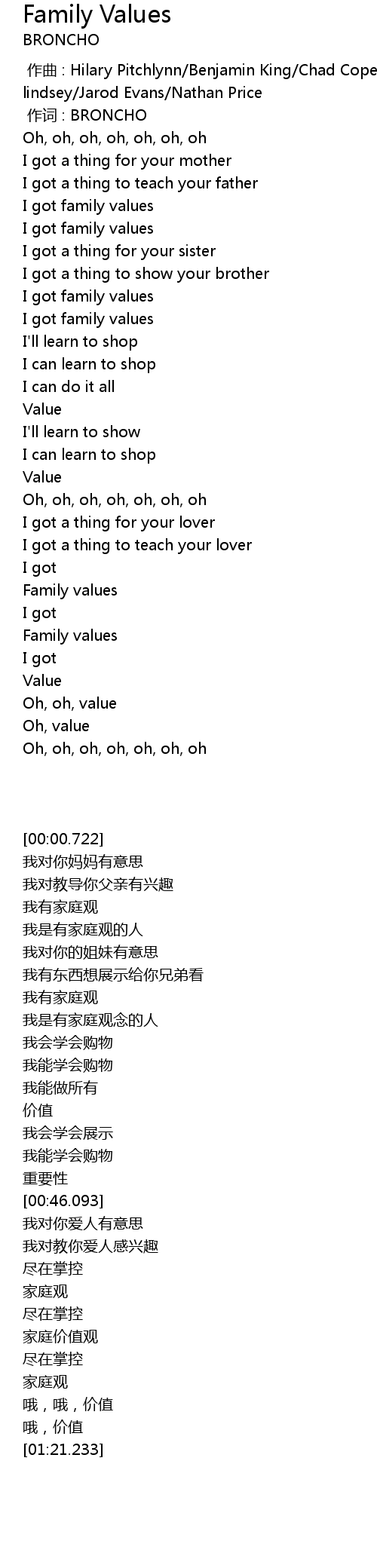 | [01:02.486] | Family values |