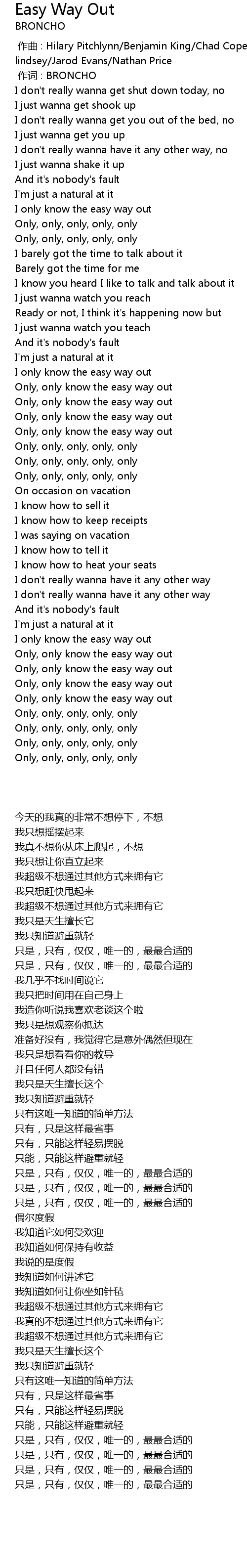 | [02:35.756] | Only, only know the easy way out |