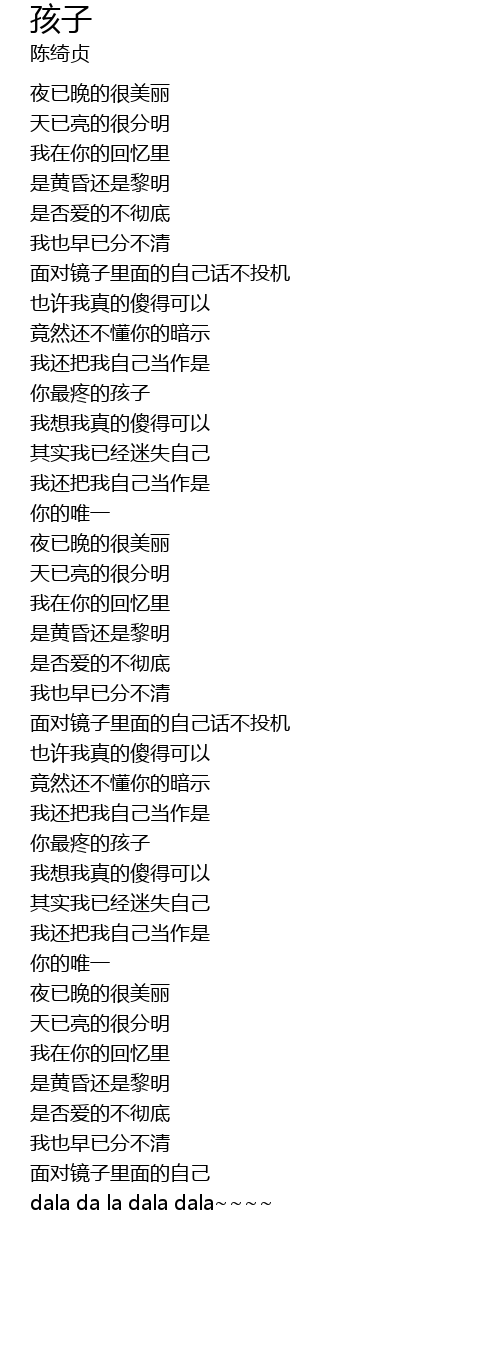 | Song | 孩子 |