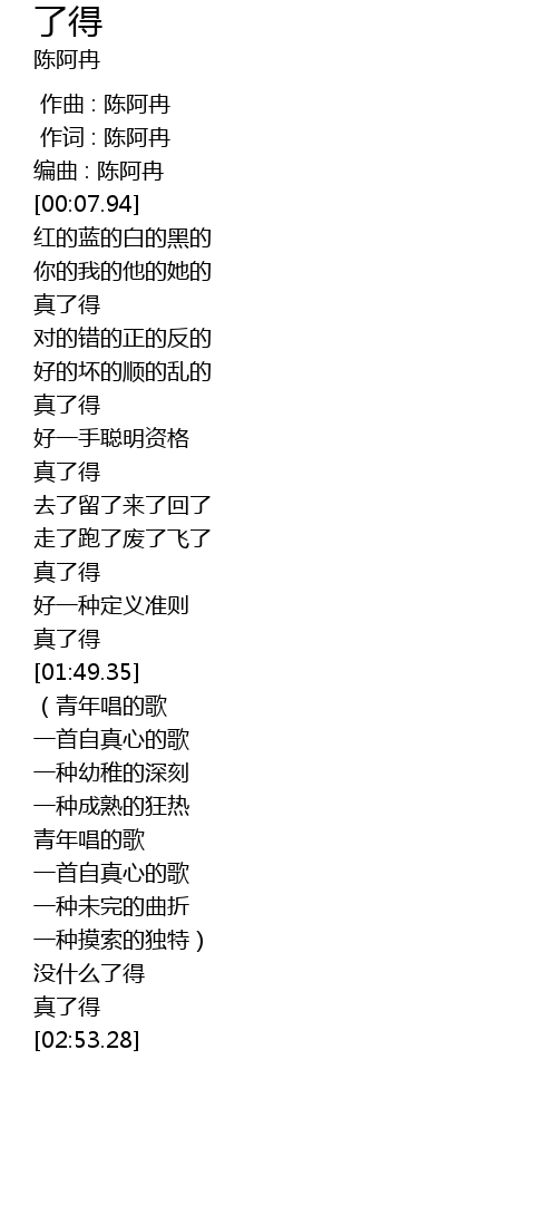 | [00:00.000] | 作曲 : 陈阿冉 |