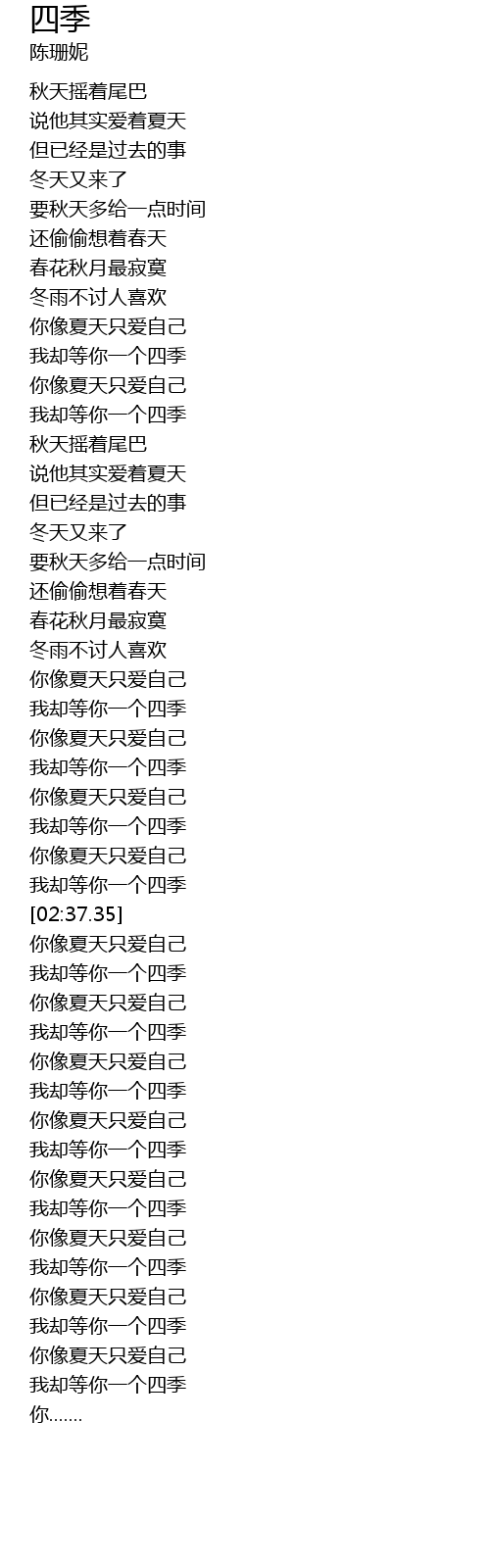 | [02:24.49] | wǒ què děng nǐ yí gè sì jì |
