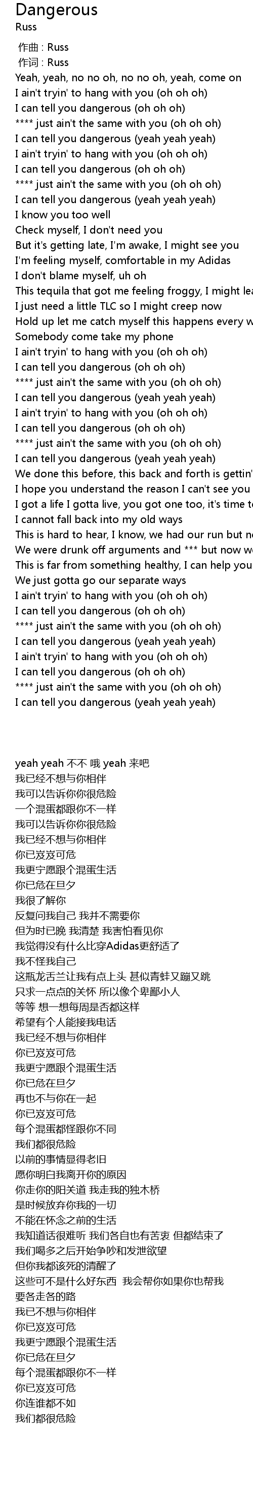 | [00:38.67] | I can tell you dangerous yeah yeah yeah |