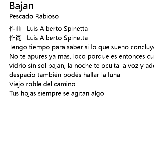 | No te apures ya má s, loco porque es entonces cuando las horas bajan, el dí a es vidrio sin sol bajan, la noche te oculta la voz y ademá s vos queré s sol despacio tambié n podé s hallar la luna | |