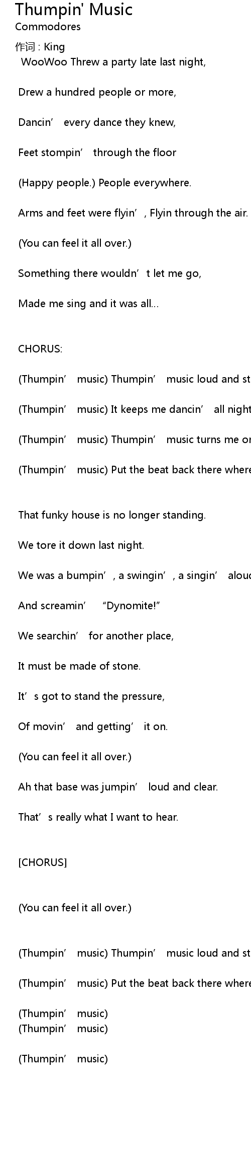 | (Thumpin’ music) Thumpin’ music turns me on. | |