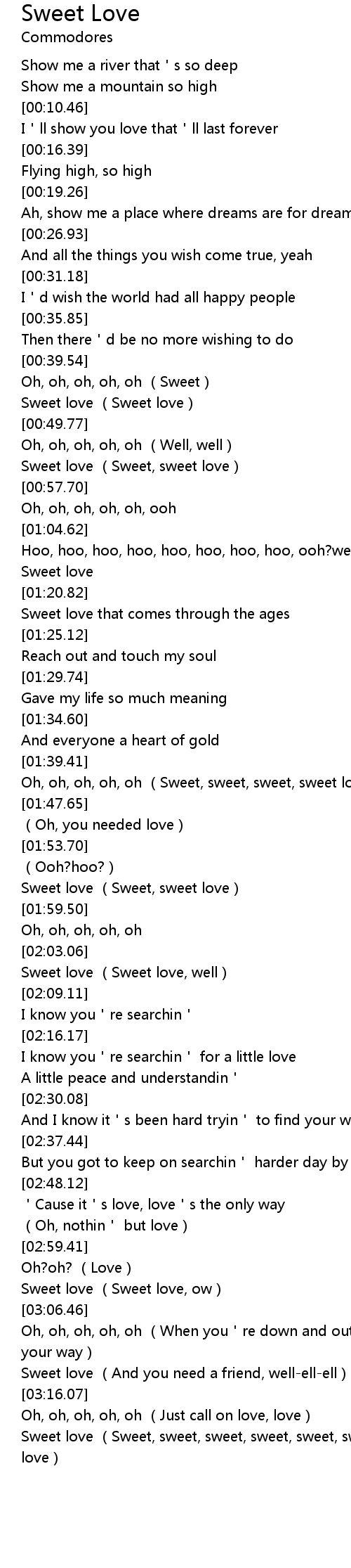 | [03:19.94] | Sweet love Sweet, sweet, sweet, sweet, sweet, sweet, sweet, sweet love |