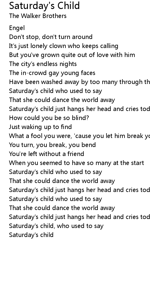 Saturday's child who used to say |
