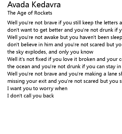 Well you're not brave if you still keep the letters and you're not sane if you don't want to get better and you're not drunk if you can stay in your lane |