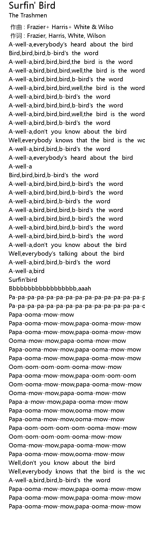 | [01:33.444] | Papa-ooma-mow-mow,papa-ooma-mow-mow |
