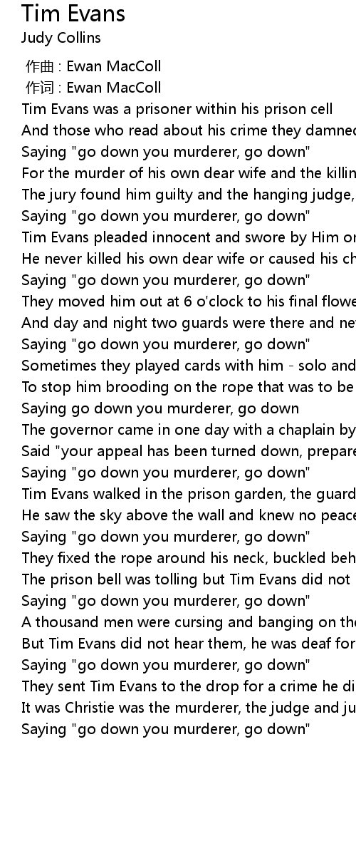 | [00:35.982] | Tim Evans pleaded innocent and swore by Him on high |