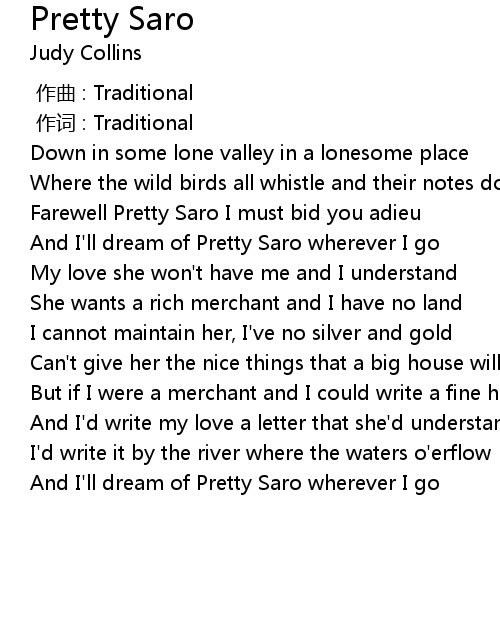 | [00:52.191] | And I'll dream of Pretty Saro wherever I go |