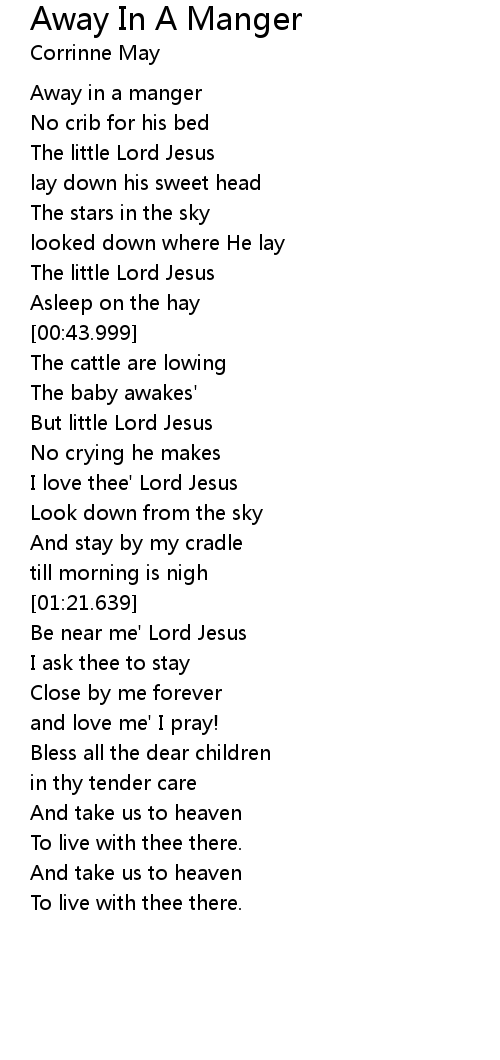 | [00:11.540] | Away in a manger |
