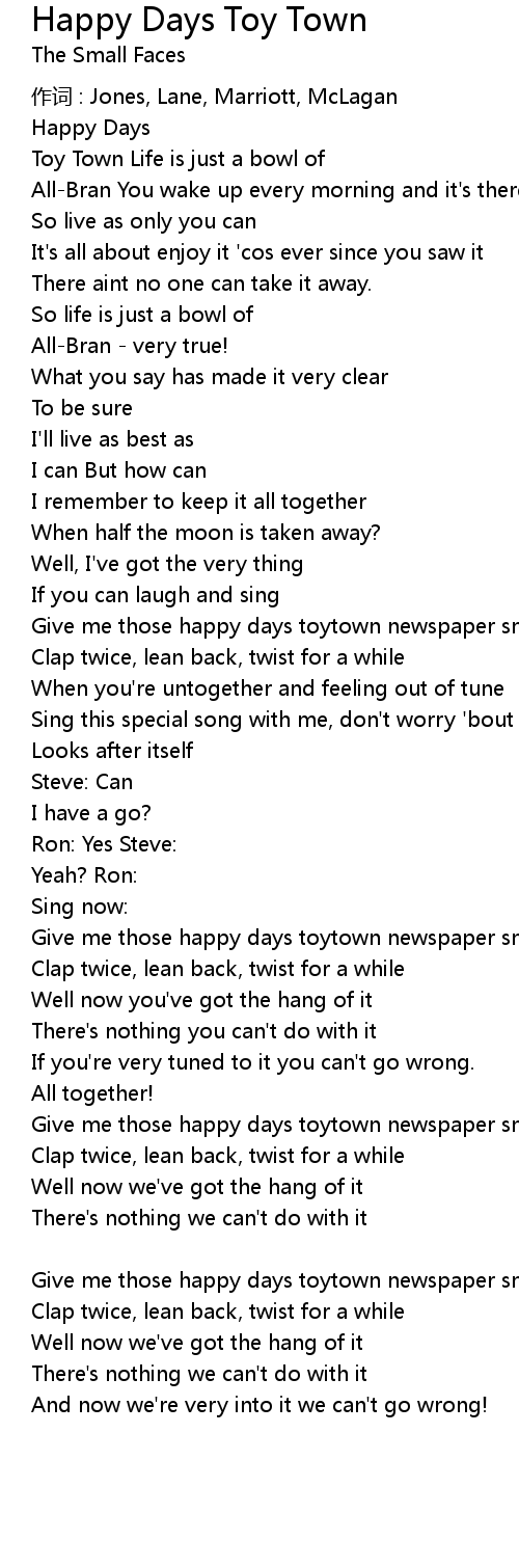 | Give me those happy days toytown newspaper smile | |