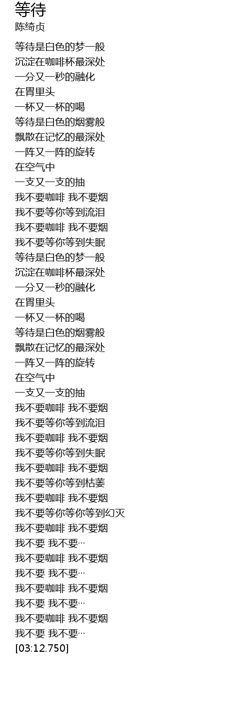 | [02:52.660] | 我不要咖啡 我不要烟 |