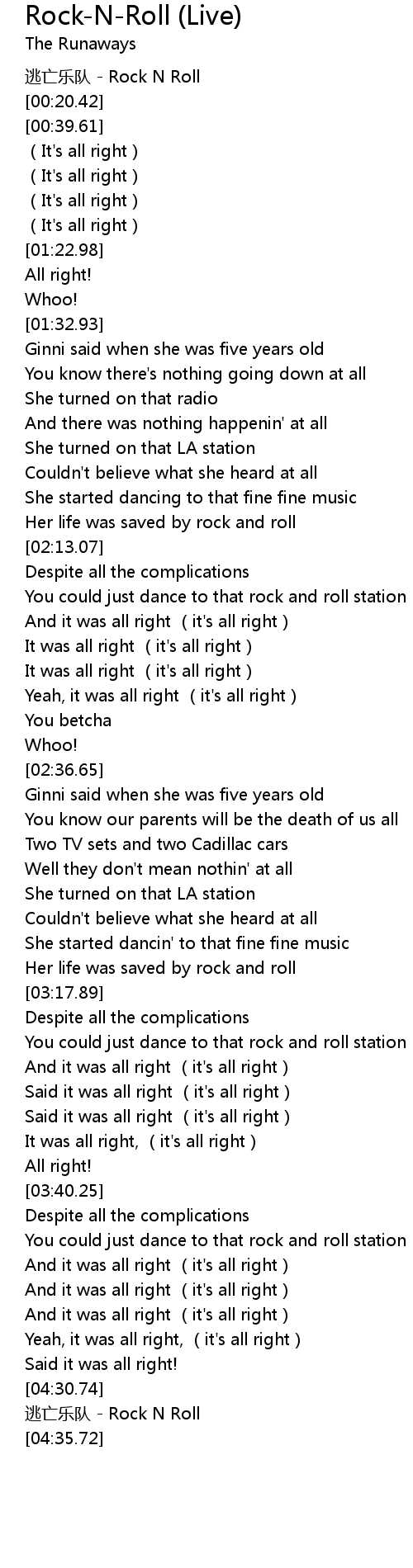 | [04:32.82] | 逃亡乐队 - Rock N Roll |