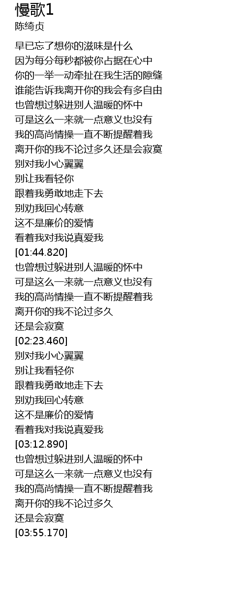 | [01:35.870] | kàn zhe wǒ duì wǒ shuō zhēn ài wǒ |