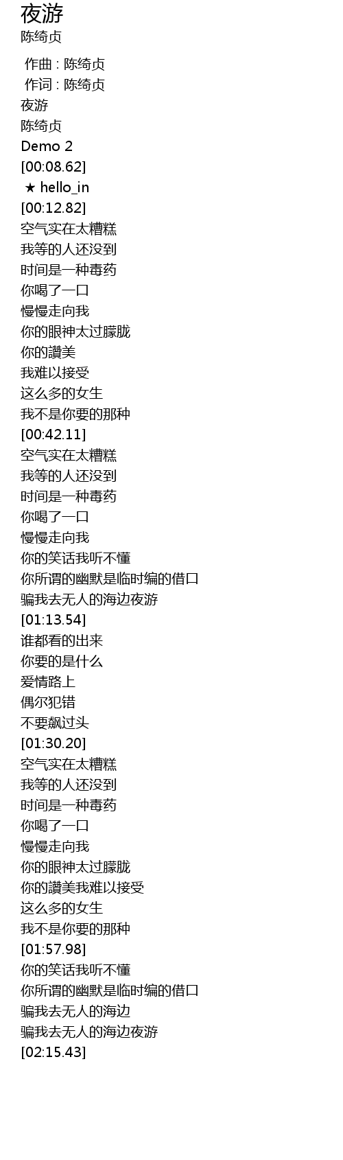 | [00:00.00] | 作曲 : 陈绮贞 |