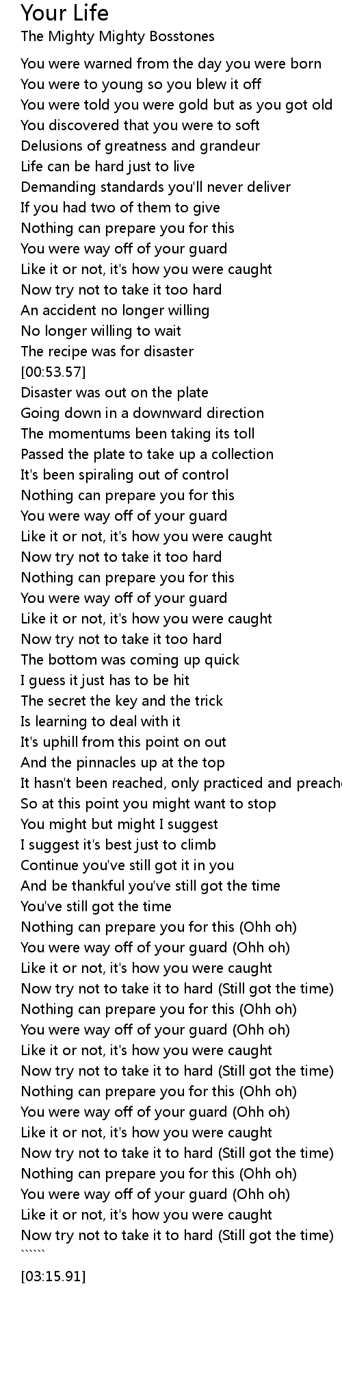 Now try not to take it to hard (Still got the time) |