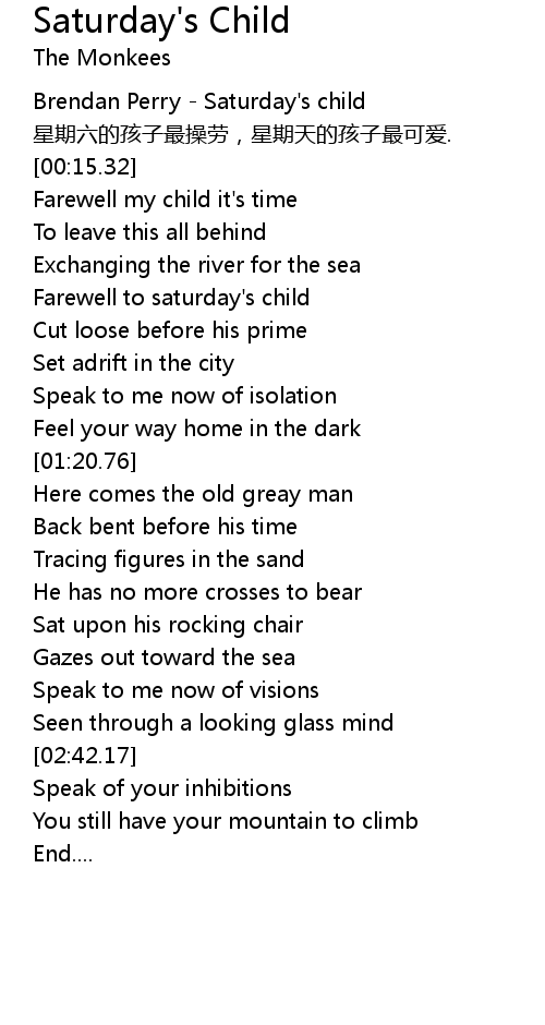 | [00:00.00] | Brendan Perry - Saturday's child |