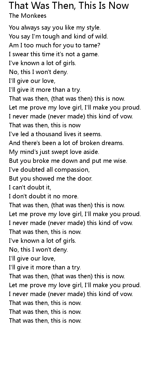 That was then, (that was then) this is now. |