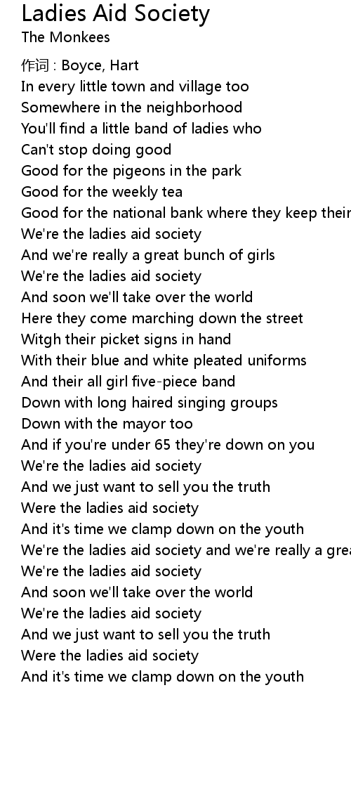 | We're the ladies aid society and we're really a great bunch of girls | |