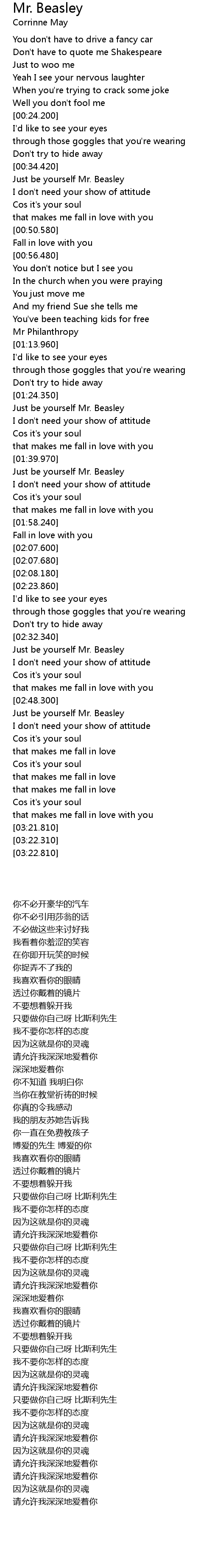 | [02:32.520] | Just be yourself Mr. Beasley |