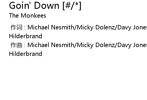 | [00:00.000] | 作曲 : Michael Nesmith/Micky Dolenz/Davy Jones/Peter Tork/Diane Hilderbrand |