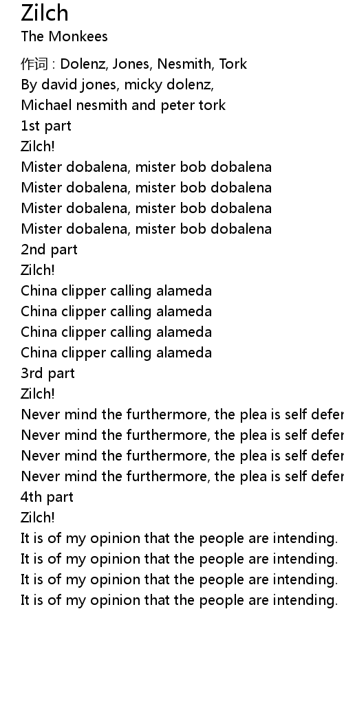 | 作词 : Dolenz, Jones, Nesmith, Tork | |