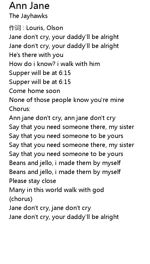 | Ann jane don't cry, ann jane don't cry | |