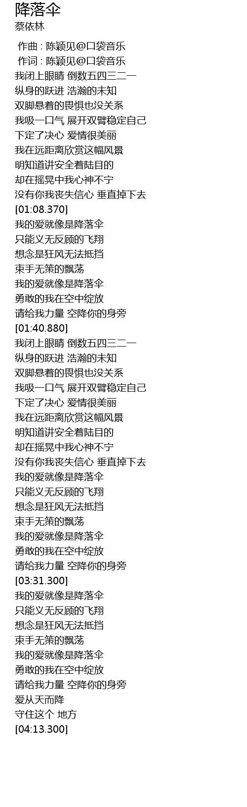 | [02:55.420] | wǒ de ài jiù xiàng shì jiàng luò sǎn |