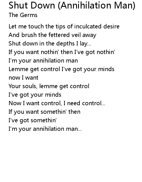 | Song | Shut Down (Annihilation Man) |