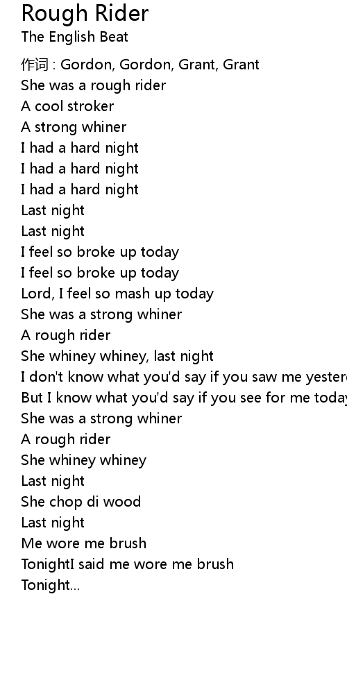 | Song | Rough Rider |