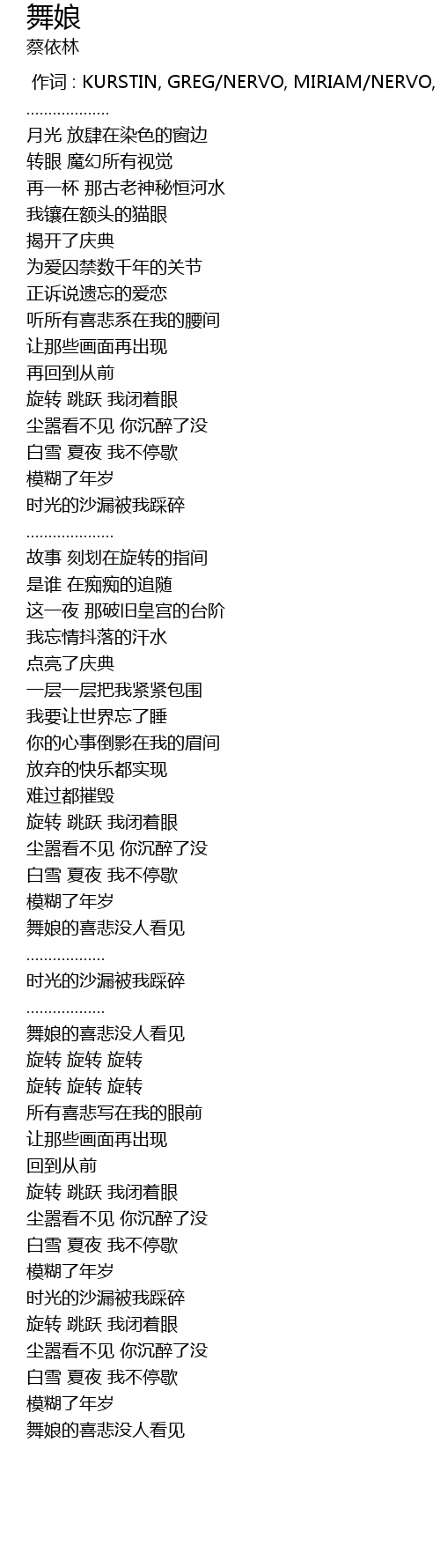 | [02:03.05] | 舞娘的喜悲没人看见 |