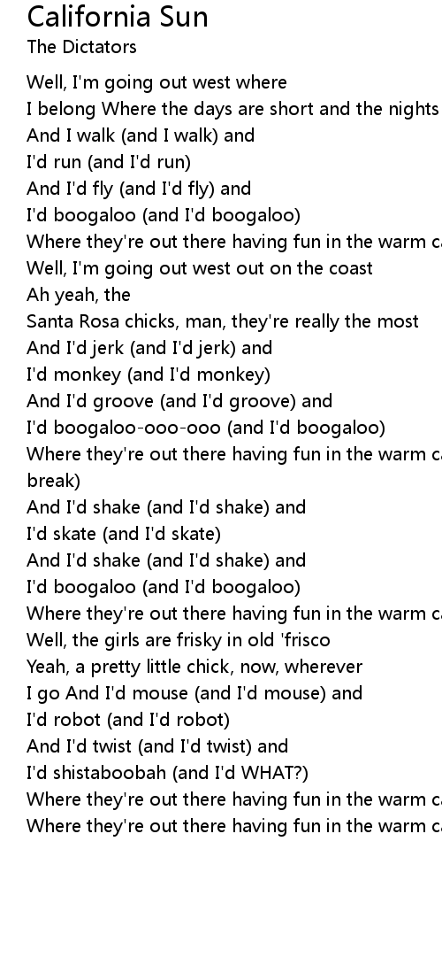 Where they're out there having fun in the warm california sun (instrumental break) |