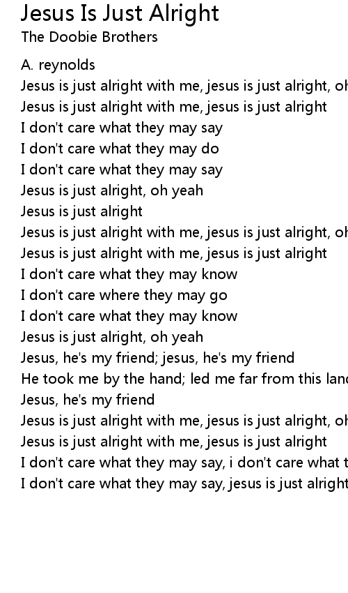 I don't care what they may say, jesus is just alright, oh yeah |