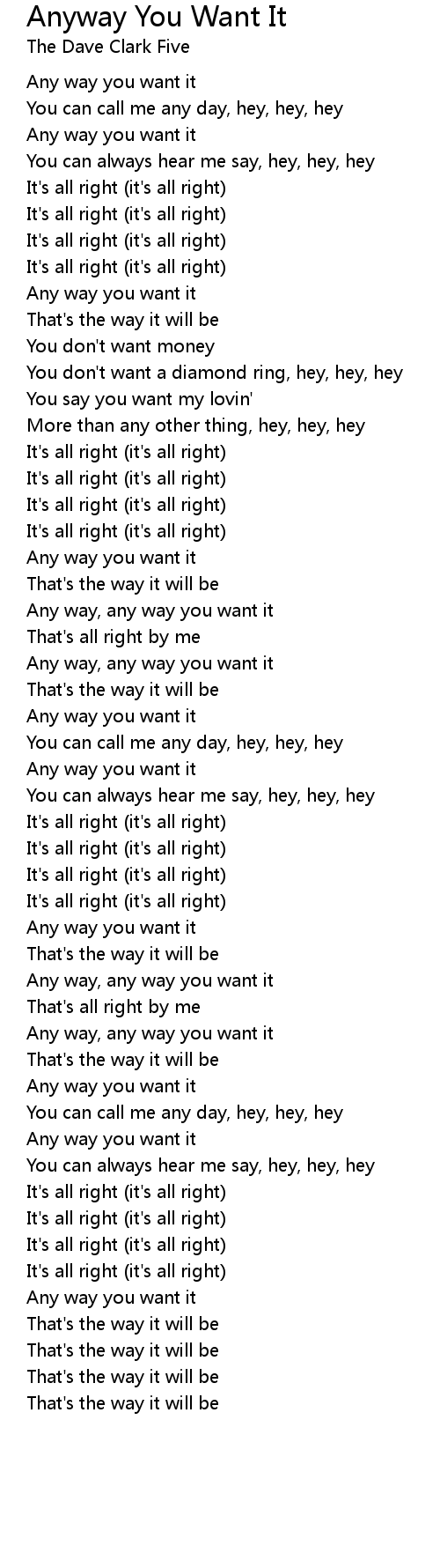 Any way, any way you want it |
