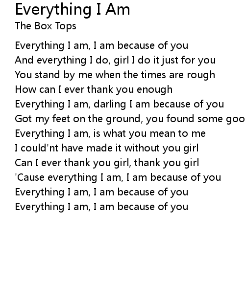 | Everything I am, I am because of you |